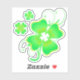 Una bonito, cuatro trébol de hojas con tonos oscuros de verde acentuado con elegantes remolinos y dos pequeñas rocas de champán verde. ¡Es un toque de buena suerte para el Día de San Patricio! Personalizar en este pegatina de corte de besos de vinilo en dos opciones de fondo. ¡Ideal para hacer reservas de recortes y más!