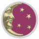 Pegatina en una clásica luna Art Deco y estrellas de diseño en oro cepillado con un aspecto esmaltado vino borgoña / fondo de ciruela