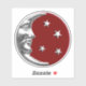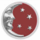 Pegatina en un clásico diseño Art Deco Moon y Stars en plata cepillada con un aspecto esmaltado, fondo rojo chino oscuro