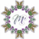 Monograma M elegante y audaz con flores moradas y rosas bonitos. Inspirado en la geometría floral Art Deco. Es posible modificar la inicial si edita el diseño ("personalizar más adelante") y luego seleccione la capa con la letra y haga clic en "recorte". Entonces puedes recortar tu propia carta.