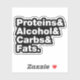 Pegatina Macronutrientes. Proteínas, alcohol, carbohidratos