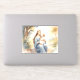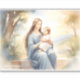 Traté de crear un retrato delicado, intenso y luminoso de Santa María, Madonna y el Niño Jesús, con un fondo natural de plantas y flores. Gráfica computacional con efecto de pintura, acuarela, entre el arte tradicional y el moderno.