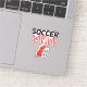 Mamá de fútbol pegatina con un lindo personalizado dinosaurio T-Rex y una pelota de fútbol.