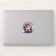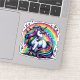 Unicornio rosa, morado, azul y amarillo colorido con un fondo de chispas arcoiris. ¡Es agradable sellar invitaciones de cumpleaños o pegarse en tu botella de agua!