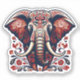 A stunning front-facing elephant head illustration, richly decorated with symmetrical floral and paisley patterns. The design features a harmonious color palette of deep red, navy blue, and cream gold, inspired by traditional Indian mandala art. This majestic totem animal is perfect for spiritual decor, yoga accessories, and bohemian-style stickers.