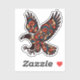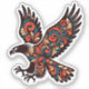 A magnificent sticker design featuring a soaring eagle, artistically rendered with intricate paisley swirls and floral patterns. The wings and body are adorned with deep red, navy blue, and gold filigree, creating a unique blend of folk art and patriotic symbolism. This stylized bird of prey captures freedom and strength in a decorative, tattoo-inspired aesthetic.