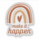Rainbow die-cut sticker with motivational quote "make it happen" in earthy brown color tones. Cute and empowering, it's ideal for decorating laptops, water bottles, notebooks, or phone cases.