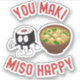 ¡Difundan vibraciones de sushi con este adorable pegatina de juego de palabras! Perfecto para laptops, botellas de agua o planificadores, este diseño "Tú maki miso feliz" es ideal para los amantes de la comida y adictos al juego de palabras por igual. Durable, juguetón y totalmente soya lindo.