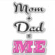 Mamá + papá = ME ilustracion de diseño de texto con colores negros y rosados para niñas bebé