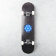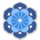 Pegatina en un diseño mandala japonés que representa una flor de loto estilizada, simbolizando pureza, despertar espiritual y fidelidad - flor en índigo profundo y tonos suaves de azul
