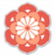 Pegatina en un diseño de mandala japonesa que representa una flor de loto estilizada, simbolizando pureza, despertar espiritual y fidelidad - flor en naranja de mandarina profunda, naranja medio y blanco