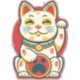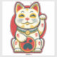 Este vibrante ilustracion presenta un tradicional Maneki Neko japonés, o "Gato Suertudo", representado en un estilo encantador y caprichoso. Se muestra al gato sentado en posición vertical, levantando su pata izquierda en un gesto acogedor que se cree trae buena fortuna y felicidad. El gato tiene una expresión encantadora y alegre, con los ojos anchos y la boca curvada en una sonrisa suave. El Maneki Neko es predominantemente blanco, con manchas de amarillo y rojo, añadiendo un toque animado y colorido al diseño. Lleva puesto un collar verde adornado con una campana de oro, que simboliza la riqueza y la prosperidad. El gato tiene una gran moneda roja con huellas de pata negra, destacando aún más su papel como portador de suerte y buena fortuna. El fondo está formado por un círculo rojo audaz que realza el aspecto alegre y luminoso del gato. El diseño general tiene una textura retro, un poco angustiada, que le da un toque nostálgico e intemporal.