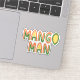 Mango Man con diseño tipográfico de fuentes tropicales y colores de frutas de mango para una atmósfera caribeña.