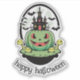 Este es un lindo diseño pegatina hecho de una figura verde de jack-o-linterna, una mansión embrujada, monstruos espeluznantes y murciélagos. Puedes personalizar el texto predeterminado de "Halloween feliz".