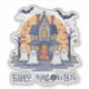 Este es un lindo pegatina de Halloween que presenta lindos fantasmas parados frente a una mansión embrujada. Puede personalizar el texto predeterminado "HAPPY HALLOWEEN".