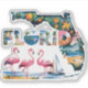Pegatina Mapa de Florida con Flamencos Rosados Tropicales