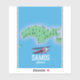 Mapa de la isla griega de Samos con un hermoso avión rojo de estilo vintage.
