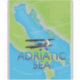 Afiche de viaje del mapa del vuelo marítimo con un pequeño prop biplano.