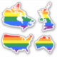 pegatinas de vinilo cortados por personalizados con mapas de cuatro países con los colores de la bandera del orgullo LGBT; las formas incluidas: un mapa de Australia, un mapa de Canadá, un mapa del Reino Unido, un mapa de los Estados Unidos de América; diseño del orgullo LGBTQ