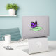 Un pegatina colorido y adorable con una mariposa monarca morada sentada en una hoja. Una gran manera de etiquetar tus objetos personales.