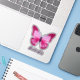 Este pegatina de vinilo contorneado presenta un gráfico de mariposa rosada y púrpura junto con un pegatina separado que tiene texto de personalizable.