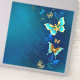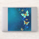 Oro volador, mariposa de joyas sobre fondo textural azul. Diseño con mariposas.