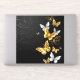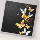Oro, joyas y mariposas blancas sobre fondo negro. Mariposa dorada.
