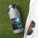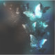 Mariposas brillantes nocturnas de menta sobre fondo abstracto negro.