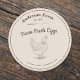Pegatina rústico para la venta de huevos frescos en tonos marrones, con un ilustracion artístico de gallina o pollo. Los textos son totalmente personalizables. Podría ser perfecto para una granja familiar, mercados de alimentos, tiendas de comestibles, etc.