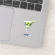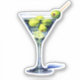 Un clásico cóctel martini con aceitunas verdes en un vaso martini contra un fondo negro. La bebida está aderezada con una aceituna en un palillo.
