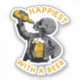 Pegatina más feliz con una cerveza con esqueleto llevando u