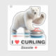 Un ilustracion encantador de un oso polar atlético, astutamente dedicado al curling, deslizando una piedra con precisión sobre una brillante pista de hielo, perfecto para los aficionados a los deportes de invierno y los aficionados al curling.