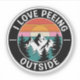 ¡Acepta tu amor por la naturaleza y, bueno, mira afuera con este pegatina gracioso! Con un paisaje montañoso pintoresco y la audaz declaración "I Love Peeing Outside", este pegatina es perfecto para los amantes del aire libre, los acampados, los excursionistas y todo aquel que aprecie un buen baño con vistas. Hecho con vinilo duradero, este pegatina está listo para cualquier aventura. Dale una cachetada en tu botella de agua, refrigerador, ventana del auto o cualquier otra superficie lisa.