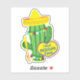 Divertido sticker para amantes de la comida mexicana con un cactus que lleva un sombrero y sostiene un tenedor gigante, para que lo pongas en tus dispositivos electrónicos, equipaje, vehículo, botellas, útiles de trabajo o escuela.