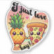 Para los amantes de la pizza con piña, este encantador pegatina cuenta con una pizza y una piña que se toman de la mano. Es perfecto para añadir un toque dulce a tu espacio.
