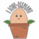 Divertido pegatina de un huevo en una olla de una planta debajo de la cita I Love Eggplant . Perfecto para vegetarianos y veganos