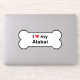 ¡Un diseño pegatina bonito y hermoso para todos los amantes del perro! "Amo mi Alabai" impreso en un gráfico de hueso de perro blanco. Se puede personalizar la raza de perro, y este diseño se crea para nombres de corta raza. Para nombres de razas largas, está disponible en la tienda Bunny Prince Design bajo la categoría "Animal & Mascotas".