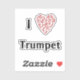 ¡Muestra tu amor por la música y la trompeta con estos pegatinas de música de I Heart! ¡Un gran regalo para profesores de música, músicos o estudiantes de música! El corazón se compone de arcos de trébol, arcos de bajo y diferentes notas musicales en forma de corazón rojo. ¡Mantenga el texto como es o como personalizar para reflejar qué instrumento musical, grupo o conjunto le encanta!