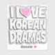 ¿Eres adicto a dramas coreanos como yo? Entonces seguro que disfrutarán de esto I Love Korean Dramas diseño de texto con letras audaces y un acento cardíaco rosado. ¡Es genial para los personalizados pegatinas adorables para cualquier fan de K-Drama! Personalizar de cualquier manera que te guste hacerlo justo para ti! ¡Póngalo en cualquier cosa para mostrar tu amor por K-Dramas!