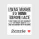 Pegatina Me Enseñaron A Pensar Antes De Actuar Con Sarcasmo