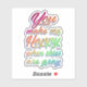 El pegatina presenta un vibrante fondo de arcoiris, que sirve como un colorido y edificante telón de fondo para la cita, "me haces feliz cuando los cielos son grises". La cita transmite un sentido de alegría y gratitud por la presencia de alguien especial en la vida del orador. Sugiere que incluso cuando el mundo parece oscuro y sombrío, la presencia de esta persona trae luz y felicidad a sus días. El fondo arcoiris refuerza este sentido de alegría y optimismo, ya que los arcos suelen estar asociados con la esperanza y la renovación. Los colores del arcoiris se mezclan perfectamente, creando una sensación de armonía y unidad que subraya aún más el mensaje de la cita. En general, este pegatina sirve como un bello recordatorio del poder del amor y la amistad para alegrar incluso los días más sombríos. ¿Tienes deseos de diseño personal específicos? No dude en ponerse en contacto conmigo blackflyoleg@gmail.com