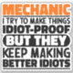 Funny Mechanic Dice "Mecánico Intento Hacer Las Cosas Idiotas A Prueba Pero Siguen Haciendo Mejores Idiotas". Agarra este diseño de Funny Mechanic como un regalo gracioso para una mamá, papá o amigo formidable.