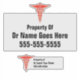 Un pegatina grande y pequeño con un símbolo caduceus rojo brillante (que parece ser tridimensional) colocado sobre un soporte blanco o transparente.