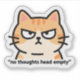 Ilustración divertida y absurda de meme de internet que presenta un gato de dibujos animados con una mirada en blanco, subtitulada "sin pensamientos cabeza vacía".
