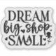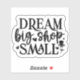 Celebra grandes sueños y apoyo sincero con este pegatina edificante "Sueña Grande, Tienda Pequeña". Con un guión elegante, una tipografía audaz y acentos florales y cardíacos dulces, es la forma perfecta de compartir sus valores y conectarse con los clientes que creen en la magia de las pequeñas empresas. Ideal para empaquetar artículos hechos a mano, objetos boutique y espíritu emprendedor.