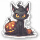 Pegatina Meowloween Halloween, Gorra de Gato Negro en Bruja
