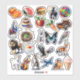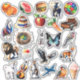 Variedad de pegatinas de vinilo acuarela. Besada, lista para usar. Diseño pegatina de colores vivos con animales, verduras, alimentos, instrumentos, aviones, coches y otros objetos. Ideal para los niños, la artesanía, la rayadura y el periodismo basura.