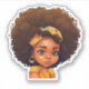 Mi Pegatina afrocéntrico - pelo natural - regalo afrocéntrico" es un pegatina que presenta un ilustracion o imagen de una persona con pelo natural, afrotexturado. El pegatina tiene la intención de ser un regalo y tiene un tema afrocéntrico, que puede incluir colores, patrones u otros elementos asociados con la cultura africana o afroamericana. El pegatina puede ser usado para decorar regalos, tarjetas u otros artículos personales, y está destinado a celebrar y promover el orgullo en el cabello negro natural.