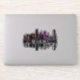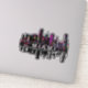 Una obra de arte de estilo callejero que presenta la ciudad de Miami, Florida, cubierta de graffiti con una reflexión de tinta negra.