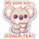 Pegatina ¡Mis Puns Son Koala-tea! Té de bebida de Koala